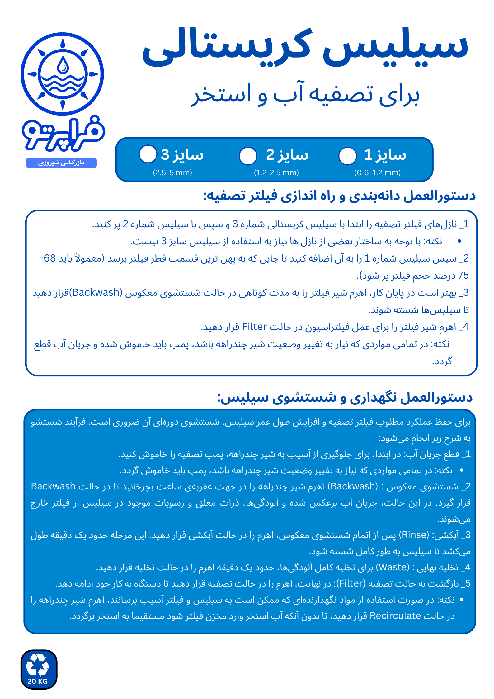 دستورالعمل دانهبندی و راه اندازی فیلتر تصفیه: