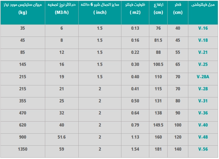 مشخصات فنی فیلتر شنی کالمو V-18