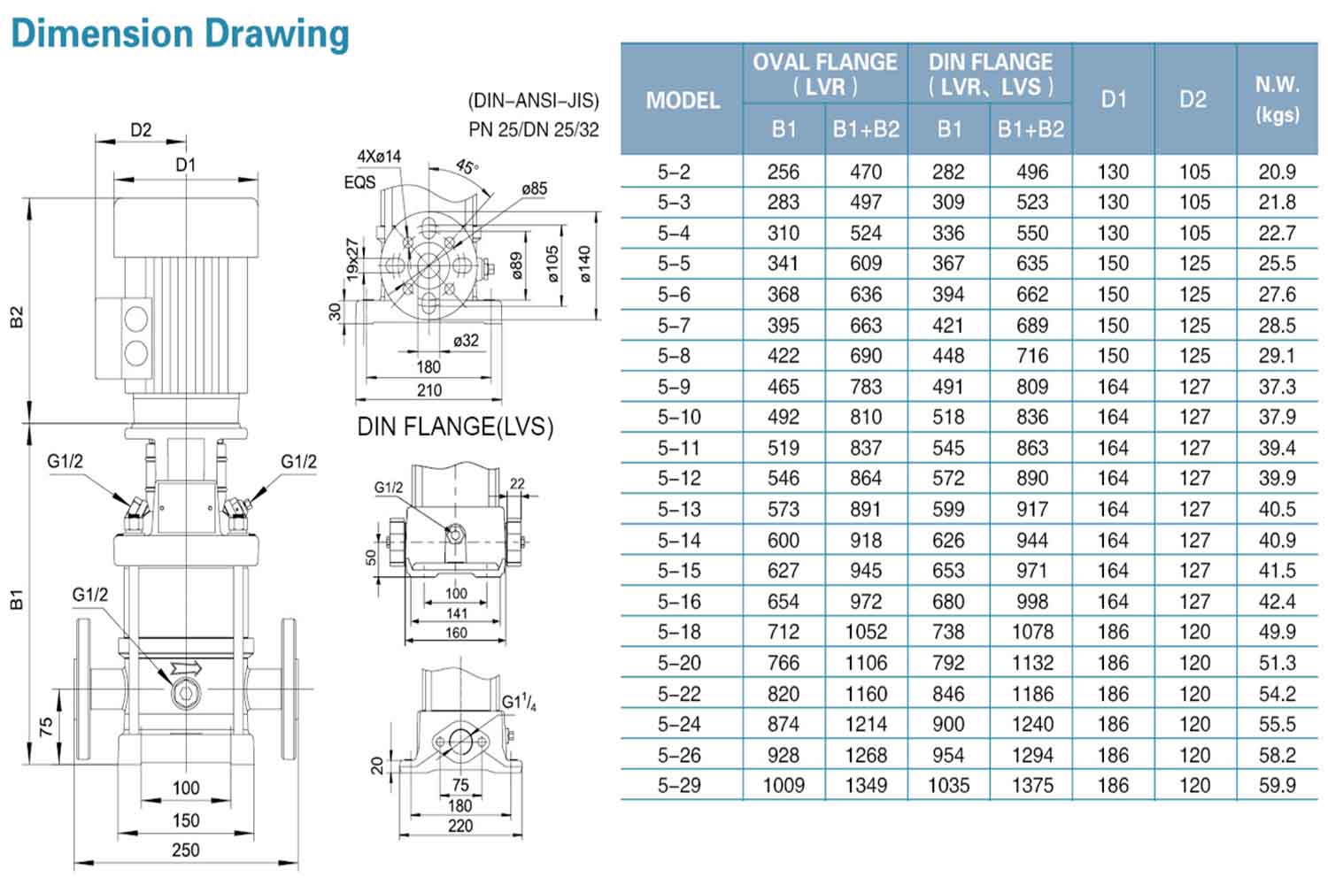 1. LVR: بدنه، پروانه و دیفیوزر از استنلس استیل 304 ساخته شده و هد و پایه پمپ از چدن ضد زنگ HT200 میباشند.