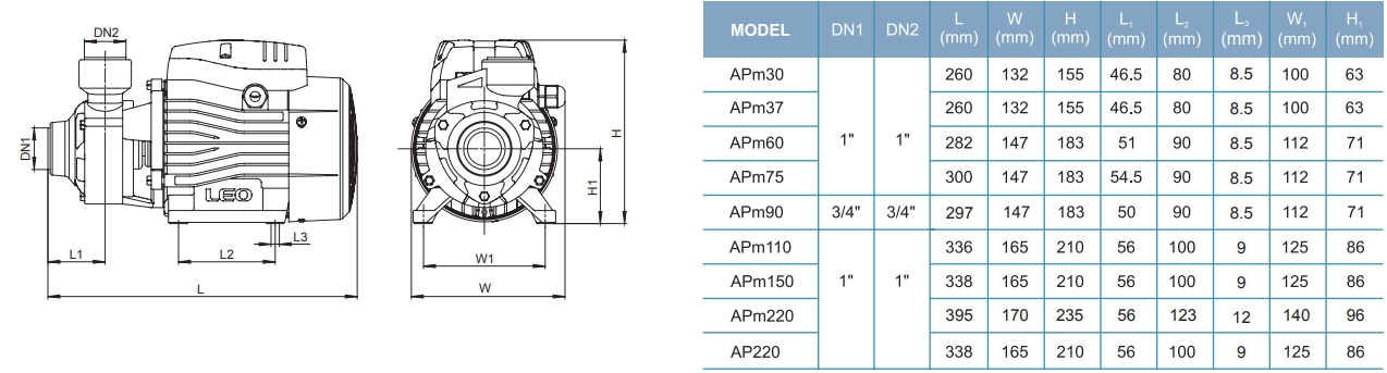 پمپ لئو سری APm در دسته پمپ های محیطی قرار می گیرد. بدنه این پمپ ها از جنس چدن ، پروانه از برنج و شفت از جنس استیل 304 ساخته شده است.