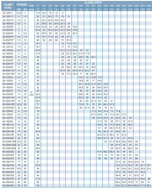 توجه: برای انتخاب پمپ مناسب، حتماً باید مشخصات آبدهی بر اساس هد پمپ بررسی شود. برای این منظور میتوانید با کارشناسان فروش ما تماس بگیرید و اطلاعات دقیقتر را دریافت کنید.