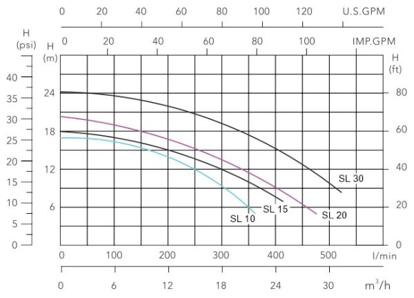 منحنی هد و دبی پمپ تصفیه استخر سیپو CIPU سری SuperLine