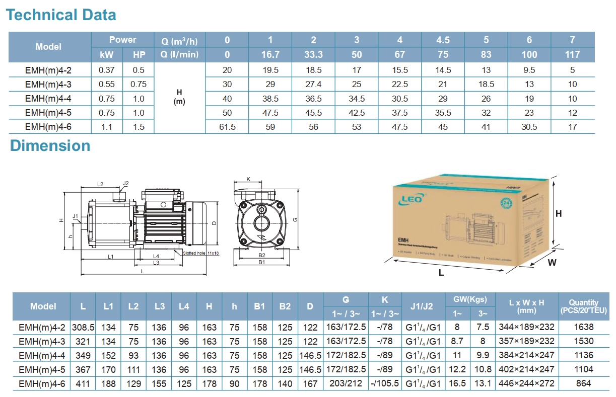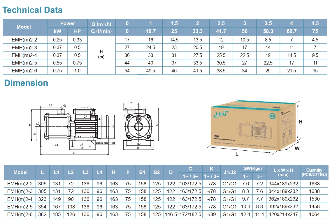 تنوع مدل‌ها: LEO سری EMH در مدل‌های مختلف با توان و هد متفاوت عرضه می‌شود تا نیازهای گوناگون کاربران را پوشش دهد.